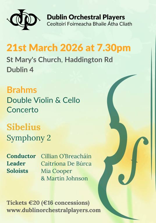 The Dublin Orchestral Players is the longest established voluntary orchestra, based in Dublin, Ireland. In 2025 we celebrated 85 years since the foundation of the orchestra in 1940. The orchestra rehearses weekly and performs three main concert programmes each year, and also provides a platform for talented emerging and established professional soloists. Our web-site gives information on forthcoming concerts, the history of the orchestra, and an application form to join the orchestra.
